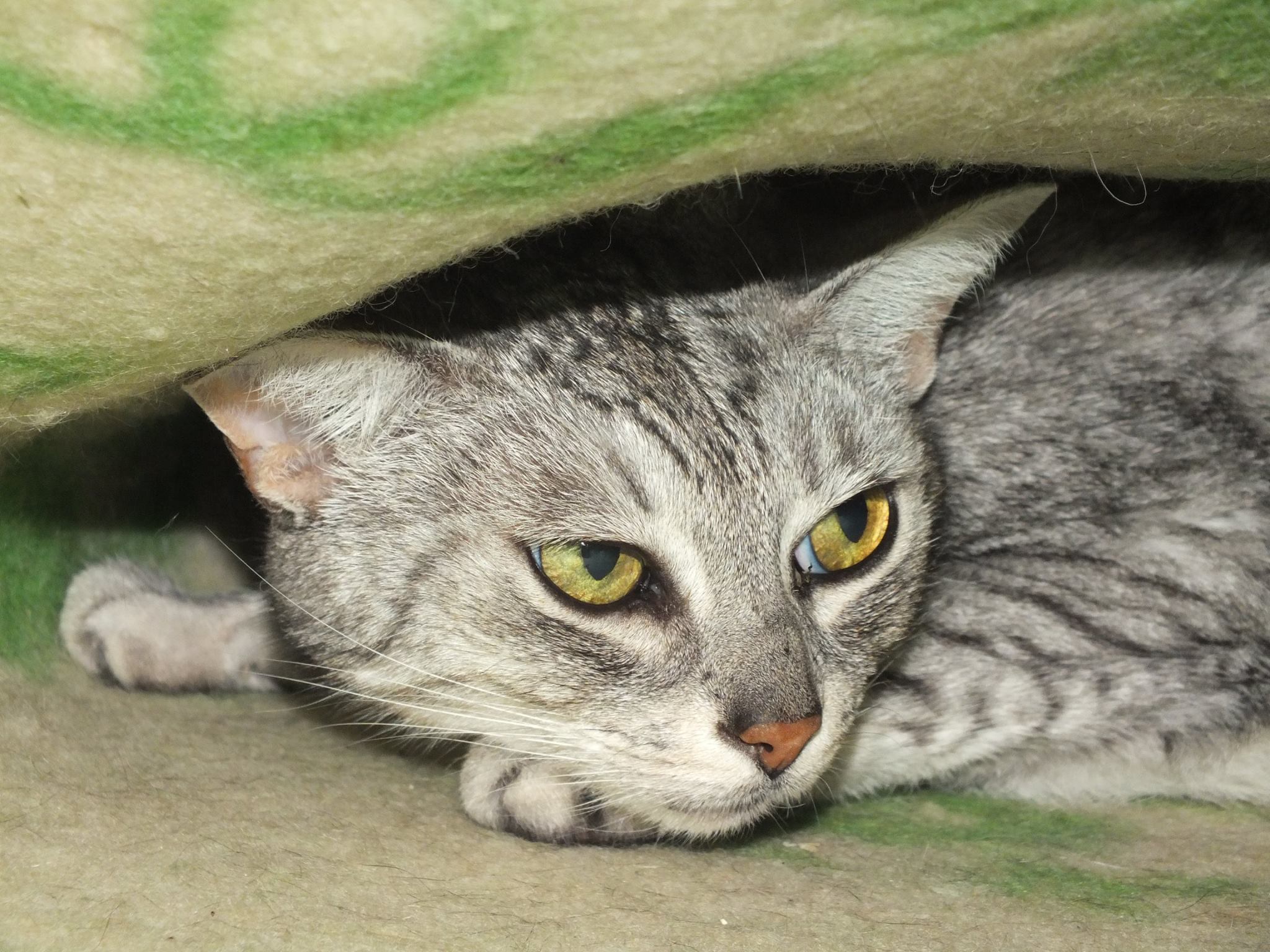 Została oddana przez właściciela z powodu wyjazdu i braku możliwości opieki. Właściciel przekazał, że kotka ma uczulenie na kurczaka. Bardzo smutna, na razie ciężko coś powiedzieć o jej charakterze. Jest wysterylizowana.