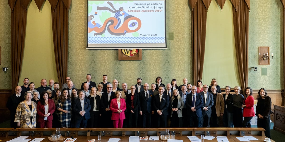 W poniedziałek, 9 marca 2026 r., w sali sesyjnej wrocławskiego ratusza odbyło się pierwsze posiedzenie Komitetu Monitorującego Strategię „Wrocław 2050”. Wzięło w nim udział 44 przedstawicieli magistratu, miejskich spółek i jednostek, biznesu, wrocławskich uczelni oraz organizacji społecznych.