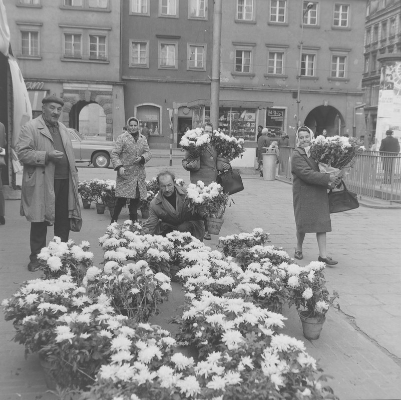 – W 1971 r. pięć dni przed dniem Wszystkich Świętych otwarto we Wrocławiu kiermasze kwiatowe, podczas których sprzedawano tak chętnie stawiane na grobach chryzantemy. Pierwszy z nich znajdował się na placu koło ówczesnego kina Śląsk (dziś Teatr Muzyczny Capitol), kolejny nieopodal – na pl. Kościuszki, trzeci zaś na pl. Solnym, gdzie swój towar wystawiły handlujące tam na co dzień prywatne kwiaciarki – zaznacza Piotr Sroka i dodaje, że kupno chryzantem w tych miejscach było możliwe do 31 października włącznie w godzinach od 10.00 do 17.00. Ponadto 30 i 31 października w tych samych godzinach oraz 1 listopada od godz. 9.00 do 17.00 stworzono odwiedzającym groby możliwość zakupu kwiatów obok cmentarzy przy ul. Osobowickiej, Grabiszyńskiej, Bujwida, Smętnej i Ślężnej oraz w Leśnicy, na Psim Polu i Brochowie.