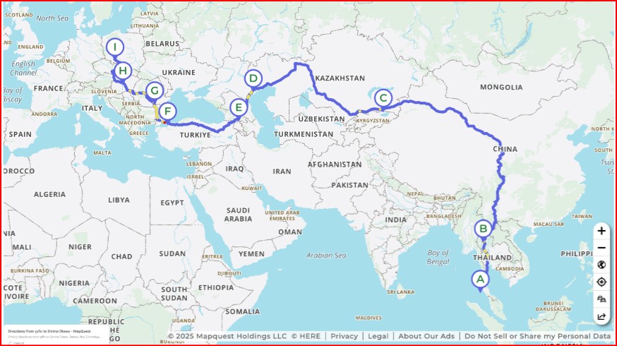 Najpierw ruszą w kierunku Bangkoku, gdzie 2 marca o godz. 9:00 będą pod polską ambasadą. Celem wyprawy jest Oława. Uczestnicy dotrą do mety przez 11 krajów. Mają do pokonania co najmniej 15 tys. km, a doliczając ewentualne objazdy i zmiany trasy (nie wszystko da się przewidzieć) - może nawet 18 tys. Zamierzają robić po kilkaset km dziennie.