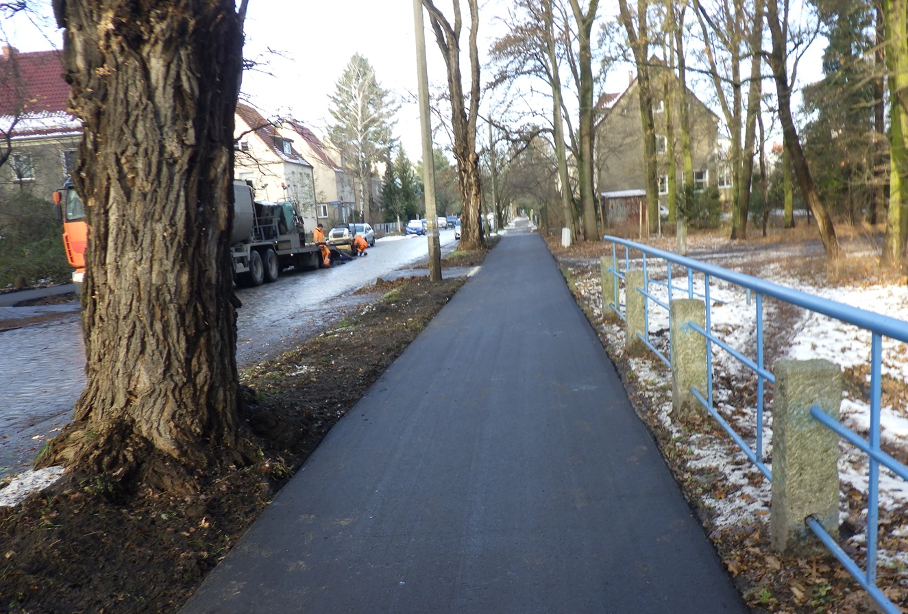 W listopadzie ruszyły prace przy poprawie stanu nawierzchni chodników i dróg rowerowych. W wybranych lokalizacjach, gdzie stary bruk i asfalt były już bardzo wysłużone i nierówne - przeprowadzono remonty. Stare, spękane i wybrzuszone nawierzchnie zostały usunięte. W Ich miejsce drogowcy położyli nową masę bitumiczną.
