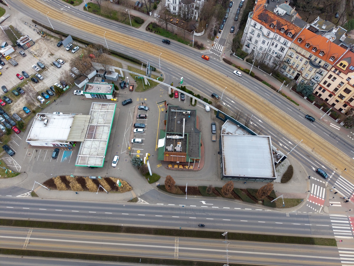 Teren u zbiegu ul. Grunwaldzkiej i Osi Grunwaldzkiej ma blisko pięć tysięcy metrów kwadratowych.