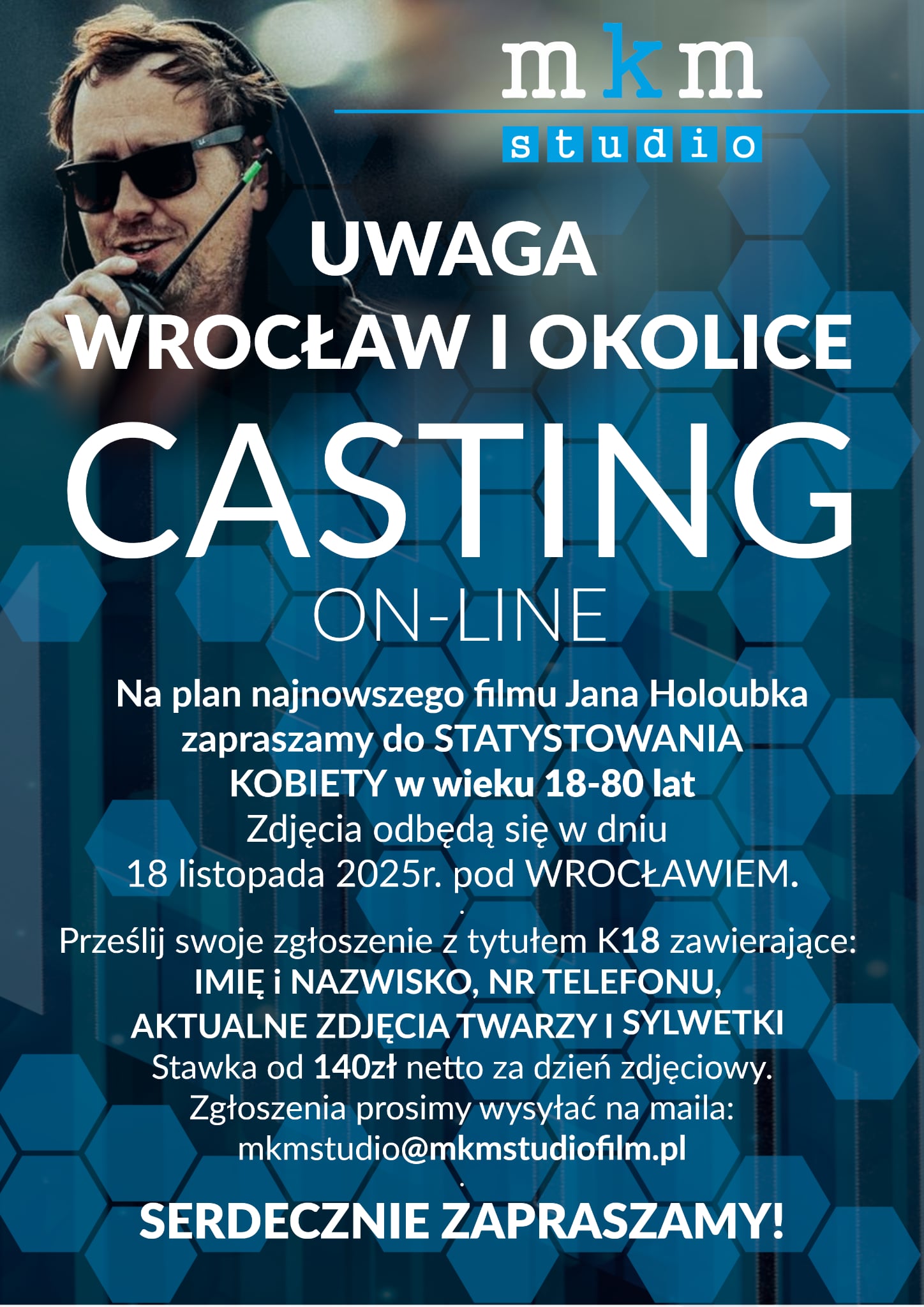 – Spotykamy się we Wrocławiu, gdzie garderoba i charakteryzacja przygotuje nas do udziału w zdjęciach i potem autobusami będziemy jechać na plan filmowy, który znajduje się pod Wrocławiem – informuje MKM Studio.