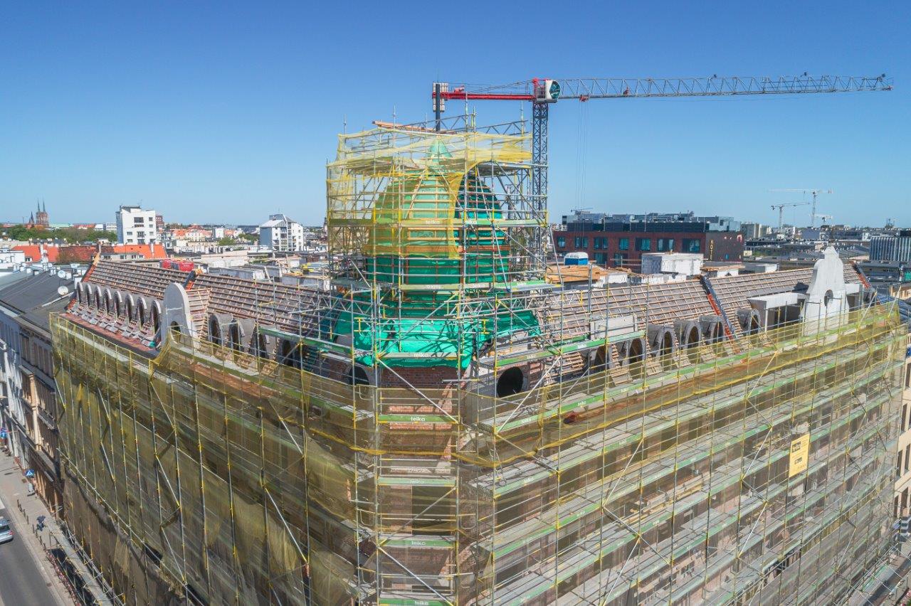 ‘We have rebuilt all walls of the hotel. Now we work from the side of ul. Gwarna. The bedplate and walls of the underground storey are completed. We are starting façade works from the side of the MDK building at ul. Kołłątaja. After the removal of scaffolds from this part, we will start fitting window frames, which was selected under the supervision of the monument conservator. The complete façade from the side of the Main Railway Station and ul. Kołłątaja should be unveiled by the end of June 2022,‘ says Piotr Wiak.