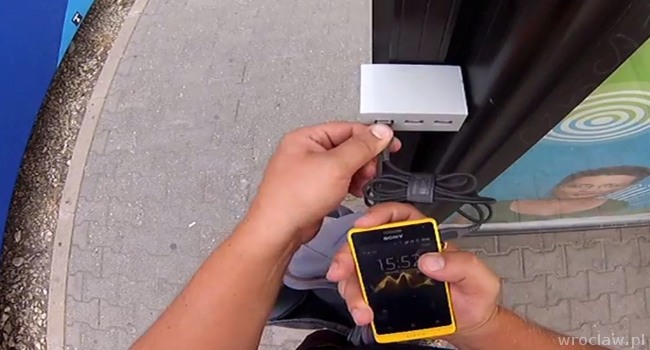 Fortum is a Finnish energy company. According to their advertising campaign, "Charge your batteries with Fortum", the company shares energy with the residents of Wrocław. Charging service will be available until September 15th at 11 selected bus stops in Wrocław: