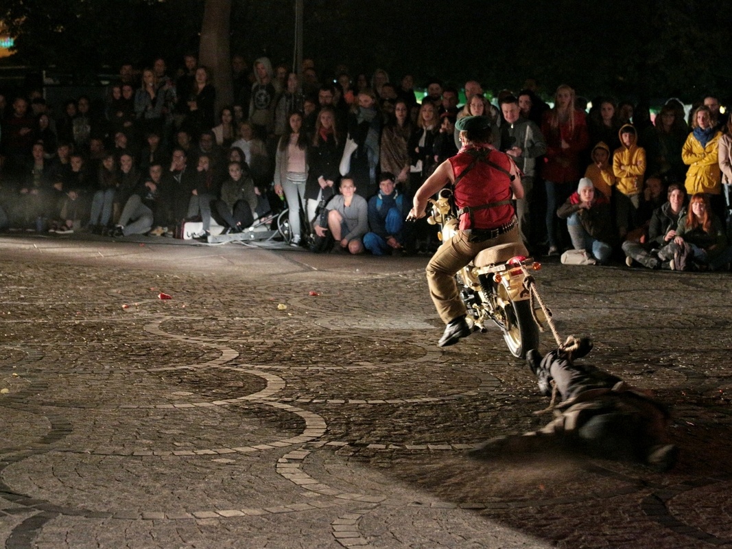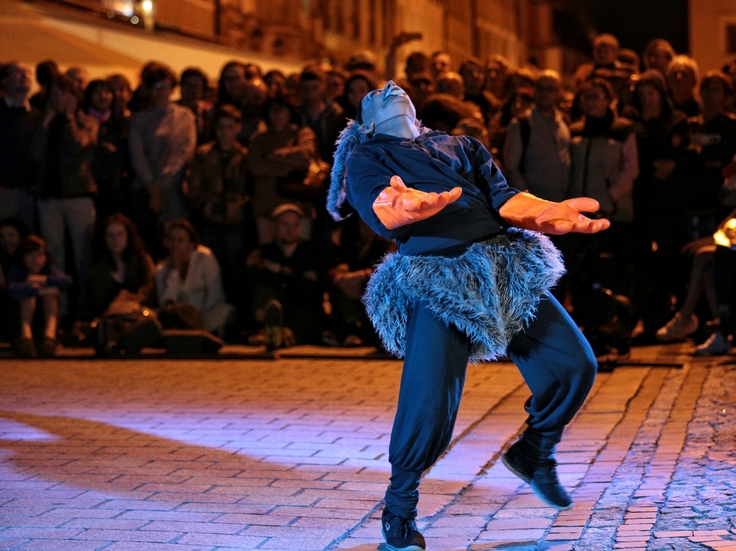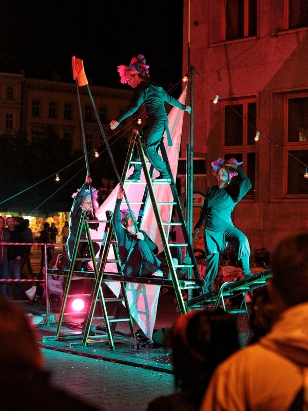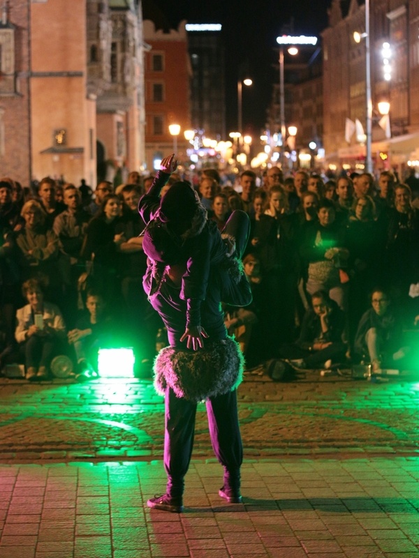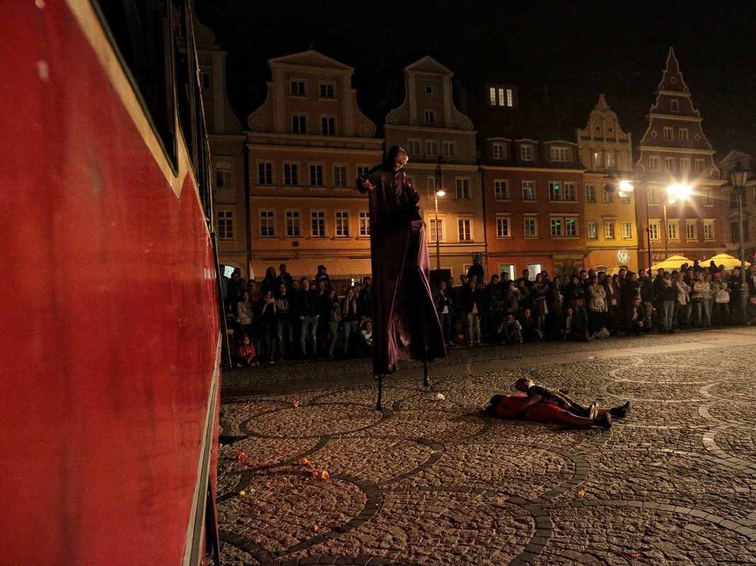 Pierwsze z przedstawień rozpoczyna się o 21.00 i trwa ok. godzinę, start drugiego o 22.00. Każdy z teatrów wybrał różne lokalizacje, ale wszystkie w samym sercu miasta, bo to Rynek, pl. Gołębi, pl. Solny, plac przed kościołem św. Elżbiety. Obejrzymy cztery teatry - Novogo Fronta z Sankt Petersburga, poznańskie Biuro Podróży oraz Teatr Ósmego Dnia, wrocławską Akademię Ruchu.