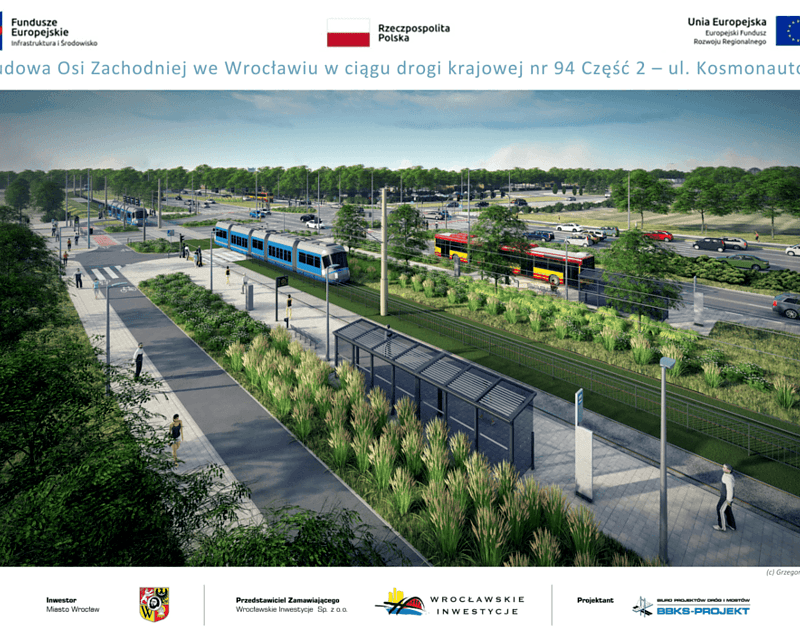 Dwa pasy jezdni na 2-km odcinku ul. Kosmonautów do centrum, zielone torowisko, nowa pętla autobusowa i budowa al. Stabłowickiej. Takie zadania do wykonania czekają na budowie Osi Zachodniej. 29 kwietnia podpisano umowę na realizację Osi Zachodniej, wykonawca ma 2 lata na wykonanie tych prac.