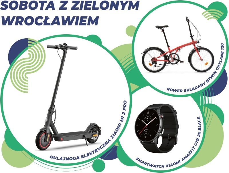 Bieg z wiadrem węgla przez przeszkody. Zielone Koło Fortuny. Sok z blendera rowerowego. Wyścig samochodzików napędzanych siłą mięśni. Eksperymenty z wodą. Za każdy elektrośmieć – jeden skrzydłokwiat. Warto grać w zielone. Kiedy? 25 września w godz. 12.00-17.00. Gdzie? Na Przedmieściu Oławskim – bulwar nad Oławą na tyłach dawnego szpitala im. Marciniaka – Żabia Ścieżka.