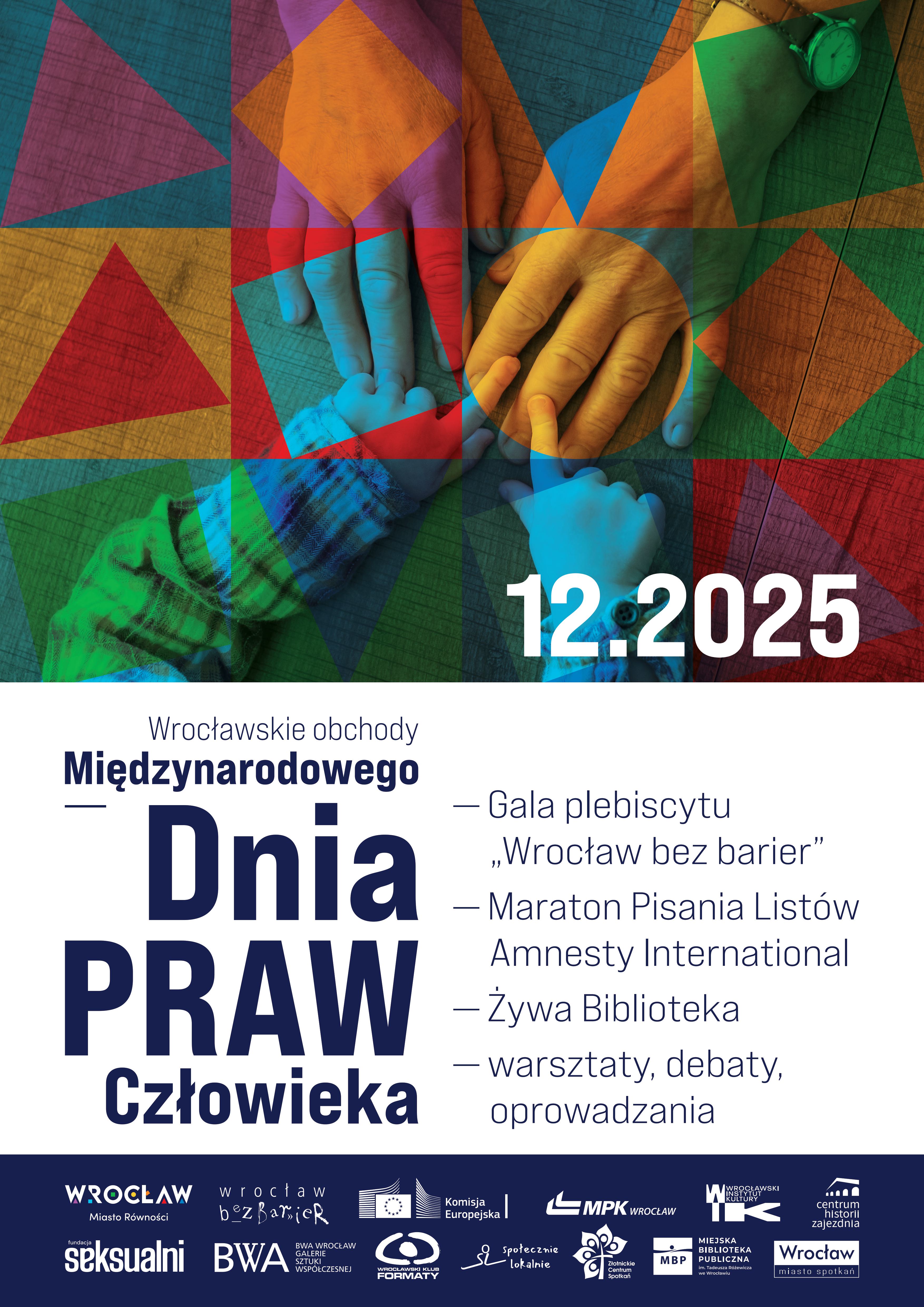 Wrocław, jako miasto otwarte i różnorodne, podkreśla, że troska o prawa człowieka jest wspólną odpowiedzialnością. Tegoroczny program to zaproszenie do refleksji, dialogu i działania – bo prawa człowieka zaczynają się tam, gdzie spotykają się ludzie.