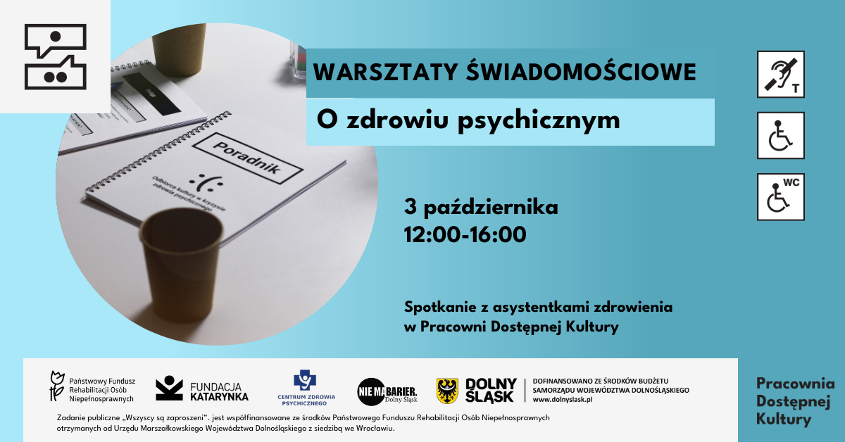 Warsztaty są skierowane do pracownic i pracowników wrocławskich instytucji oraz organizacji kultury, które chcą uczynić swoje wydarzenia bardziej otwartymi i przyjaznymi dla osób w kryzysie zdrowia psychicznego. Spotkanie realizujemy we współpracy z Centrum Zdrowia Psychicznego Wrocław Fabryczna. Każdy uczestnik po szkoleniu otrzyma specjalny certyfikat.