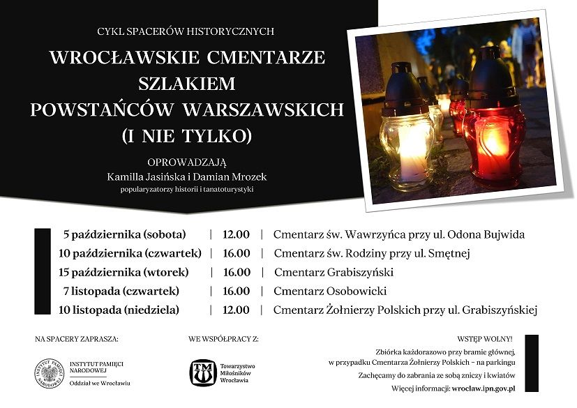 Na trasie zwiedzania znajdą się nie tylko groby powstańców warszawskich, ale także innych bohaterów walczących o wolność i niepodległość naszej Ojczyzny. Nie zabraknie opowieści o mniej lub bardziej znanych postaciach, a także o historii nekropolii. Przewodnikami będą Kamilla Jasińska oraz Damian Mrozek.