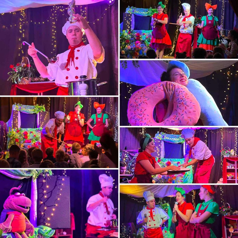Nasza scena zamieni się w roztańczoną, rozśpiewaną restaurację, gdzie obsługa doskonale wie, co każde dziecko powinno jeść, by dobrze się uczyć, być zdrowym i pełnym energii. Warzywa i owoce staną się instrumentami muzycznymi, placki będą latać nad widownią, a talerze zatańczą w powietrzu, zanim trafią na stół.