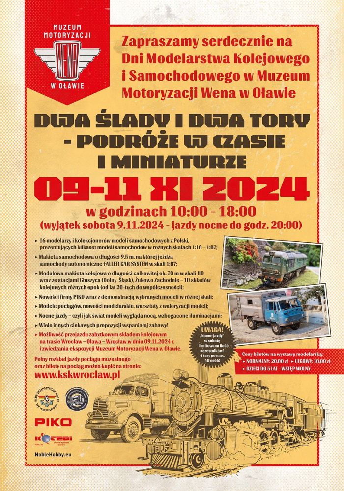 Wystawa, która łączy historię kolejnictwa i motoryzacji, to efekt współpracy Klubu Sympatyków Kolei z Muzeum Motoryzacji „Wena”. W programie przewidziano między innymi: