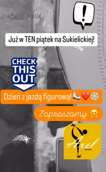 Podczas ślizgawek publicznych na lodowisku WCT Spartan przy ulicy Sukielickiej na Nowym Dworze we Wrocławiu, w godzinach od 18:00 do 20:00, będziecie mieli wyjątkową okazję pojeździć na lodzie w towarzystwie kadry i zawodników Klubu Sportowego Axel Wrocław. To jedyny na Dolnym Śląsku klub sportowy zajmujący się jazdą figurową na łyżwach i rolkach, licencjonowany przez dwa Polskie Związki Sportowe Polski Związek Łyżwiarstwa Figurowego a oraz Polski Związek Sportów Wrotkarskich.