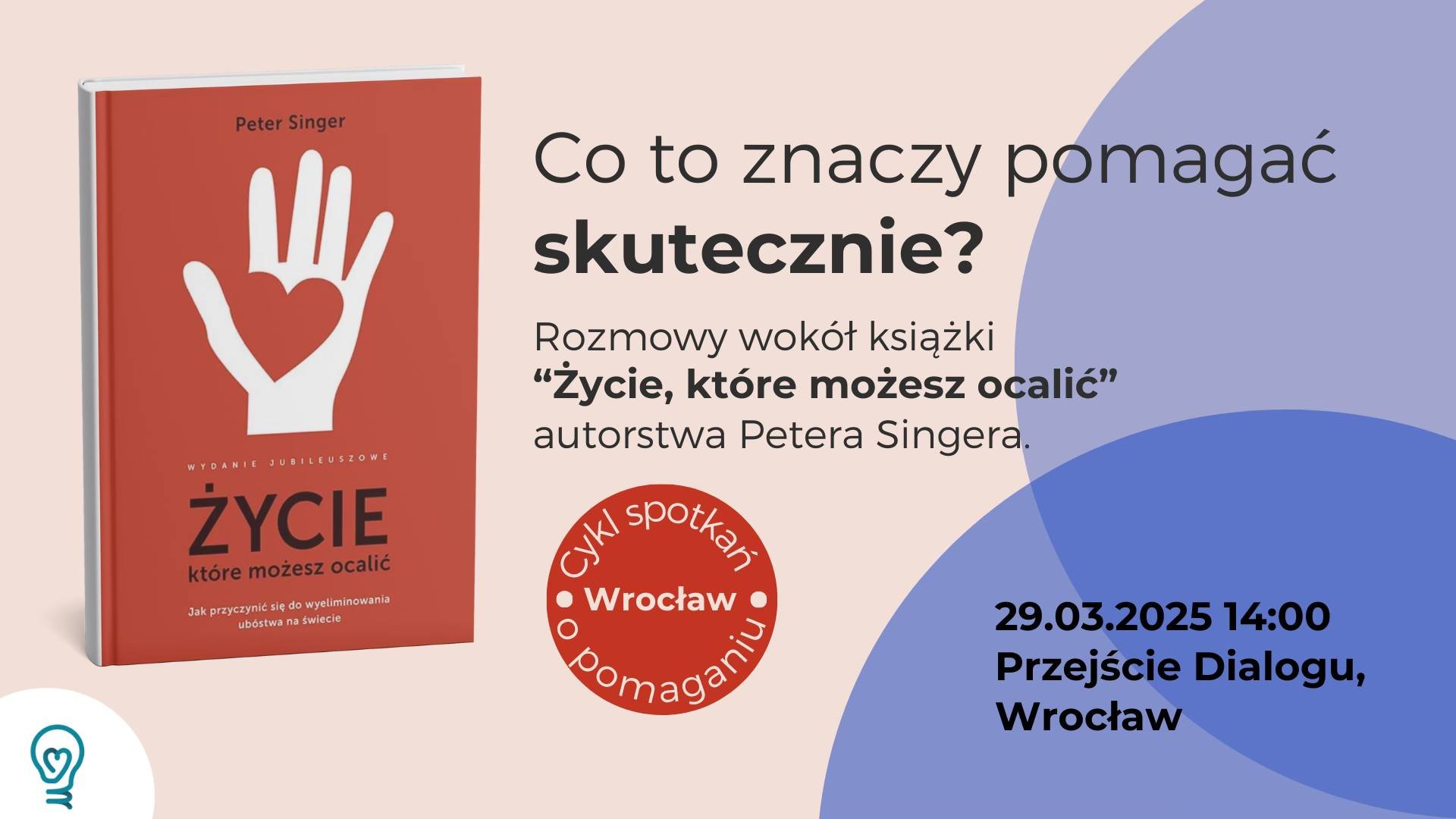 Czy pomaganie to obowiązek moralny czy raczej dobrowolny akt dobroczynności? Jakie organizacje naprawdę ratują najwięcej istnień? I czy każdy z nas może mieć realny wpływ na globalne problemy? Zapraszamy na interaktywną dyskusję wokół książki Życie, które możesz ocalić Petera Singera, organizowaną przez wrocławską społeczność ruchu Efektywny Altruizm!