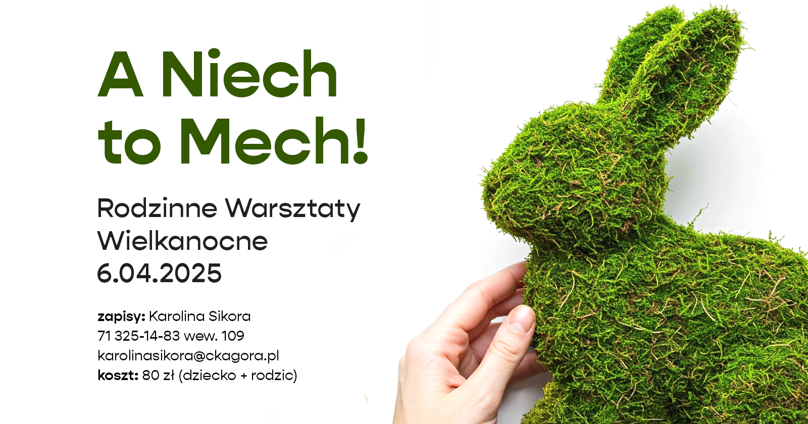 Ruszają zapisy na rodzinne warsztaty A Niech to Mech! Jak co roku zapraszamy do wspólnego tworzenia wyjątkowych dekoracji wielkanocnych. Tym razem stworzymy urocze króliki ze sztucznego mchu!