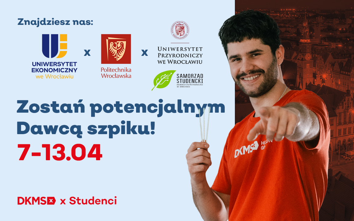 Akcja potrwa od 7 do 13 kwietnia, a stanowiska rejestracyjne będą dostępne na każdej z uczelni. Dołącz do nas i pomóż budować bazę potencjalnych dawców szpiku. Wystarczy chwila, by zrobić coś naprawdę ważnego! Więcej informacji o dawstwie szpiku można znaleźć na stronie Fundacji DKMS.