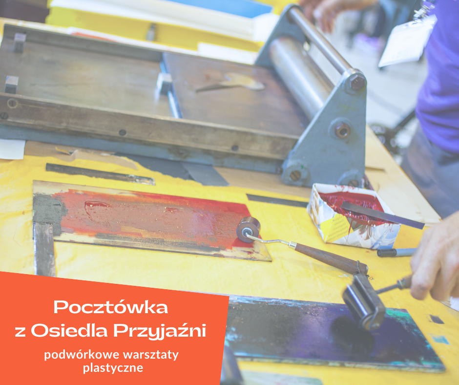 Pełne kolorów, falujące we wszystkie strony Osiedle Przyjaźni to miejsce idealne by stać się inspiracją do twórczego działania. Zrób własną, artystyczną pocztówkę z tego wyjątkowego miejsca na mapie Wrocławia i spędź miły czas w zielonej przestrzeni między blokami! Podczas warsztatu wykonamy pocztówkę w artystycznej technice graficznej – monotypii.