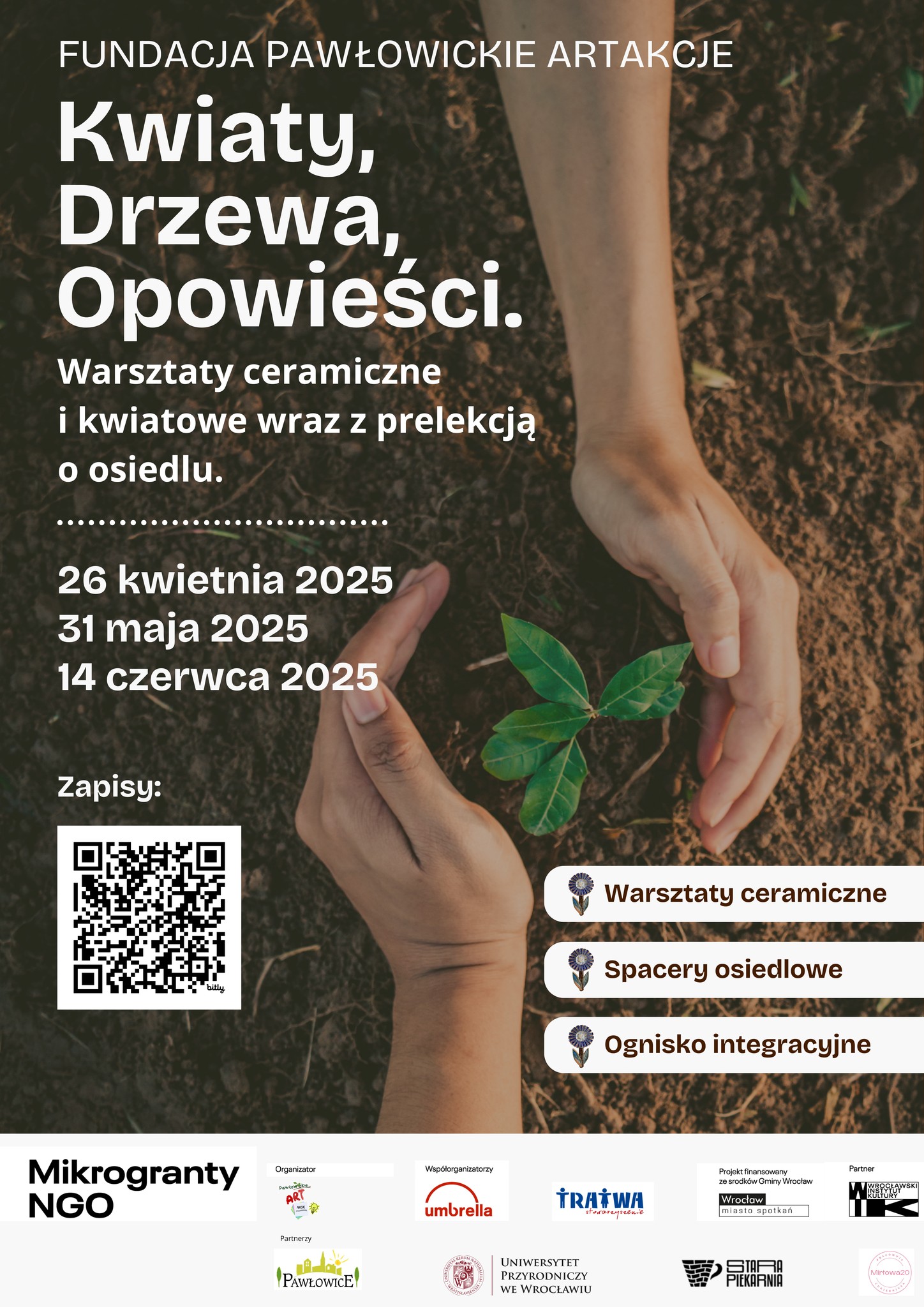 Projekt „Pawłowice: kwiaty, drzewa, opowieści. Warsztaty ceramiczne i kwiatowe wraz z prelekcją o osiedlu” jest dofinansowany w ramach Programu „Mikrogranty NGO” realizowanego ze środków Gminy Wrocław.