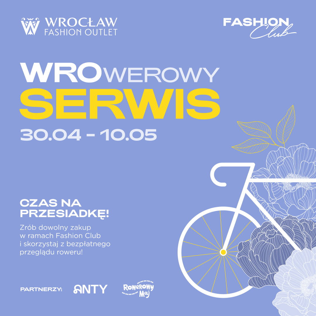 Wrocław Fashion Outlet zaprasza mieszkańców Wrocławia i okolic na piątą edycję akcji WROwerowy Serwis. Tegoroczna edycja wystartuje 30 kwietnia i potrwa do 10 maja.