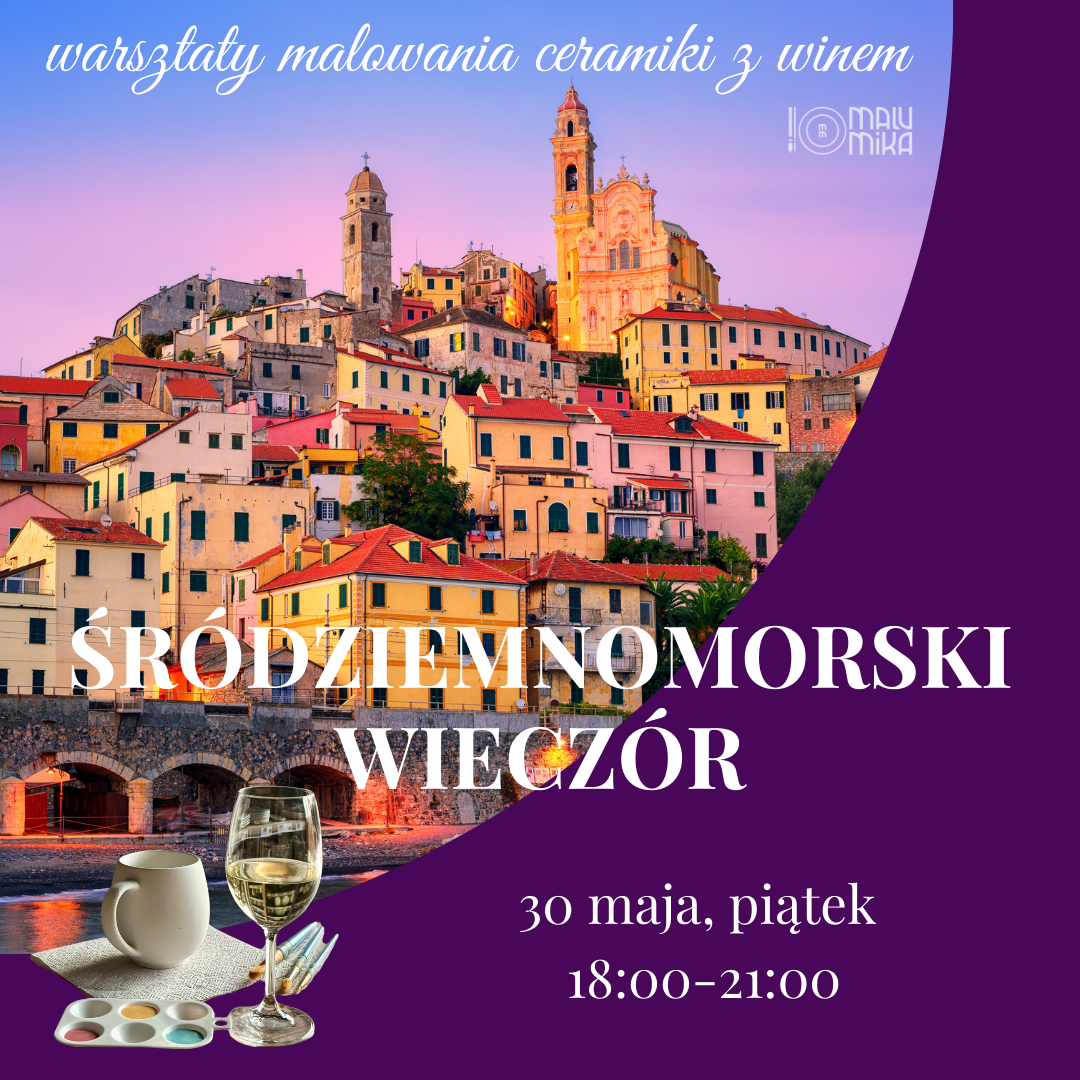 Zapraszamy na magiczny wieczór pełen kreatywności, śródziemnomorskich klimatów i wina! W piątek, 30 maja, zabierzemy Was w artystyczną podróż na słoneczne wybrzeża południa Europy – bez potrzeby pakowania walizki. Podczas warsztatów każdy uczestnik wybierze jedną formę ceramiczną o wartości do 100 zł (do wyboru m.in. talerze, miski, filiżanki czy dzbanki) i ozdobi ją według własnego pomysłu. Inspiracją będą śródziemnomorskie wzory: muszle, fale, kafelki, oliwki, cytryny czy lazur nieba nad morzem. Pokażemy zarówno podstawowe, jak i bardziej zaawansowane techniki malowania ceramiki – pomożemy w tworzeniu Twojego małego dzieła sztuki.