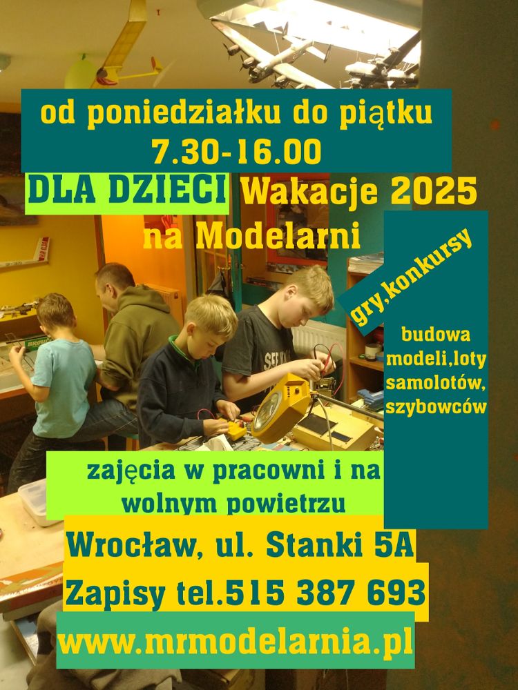 W czasie wakacji Wrocławska Modelarnia będzie prowadzić szereg zajęć dla dzieci. Czeka Was mnóstwo kreatywnej zabawy i wartościowo spędzony czas – również na świeżym powietrzu.