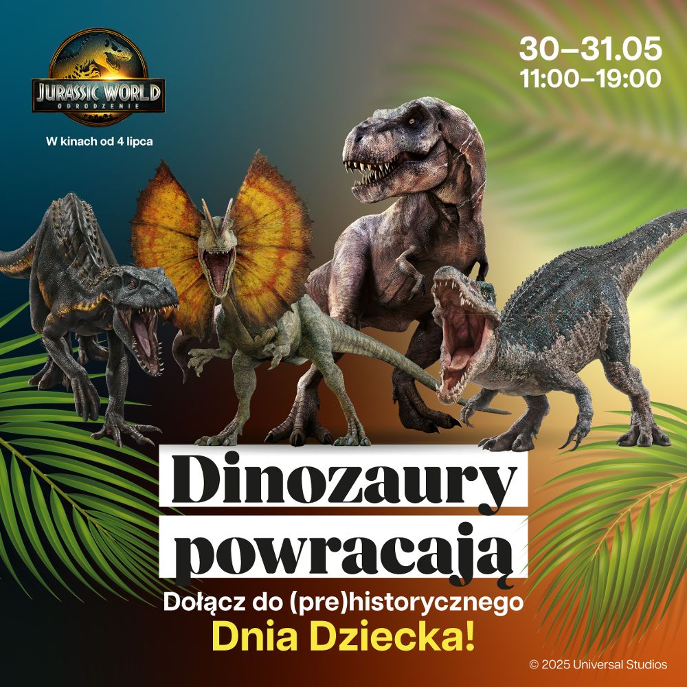 Z okazji Dnia Dziecka 30-31 maja Pasaż Grunwaldzki zamieni się w krainę z serialu i „Jurassic World”. W godzinach 11:00-19:00 przygotowaliśmy dla najmłodszych wyjątkowe atrakcje. Podczas dwóch dni dzieci będą mogły nie tylko spotkać dinozaury, ale także same stać się częścią niezwykłej historii z najnowszej premiery kinowej „Jurassic World: Odrodzenie”.