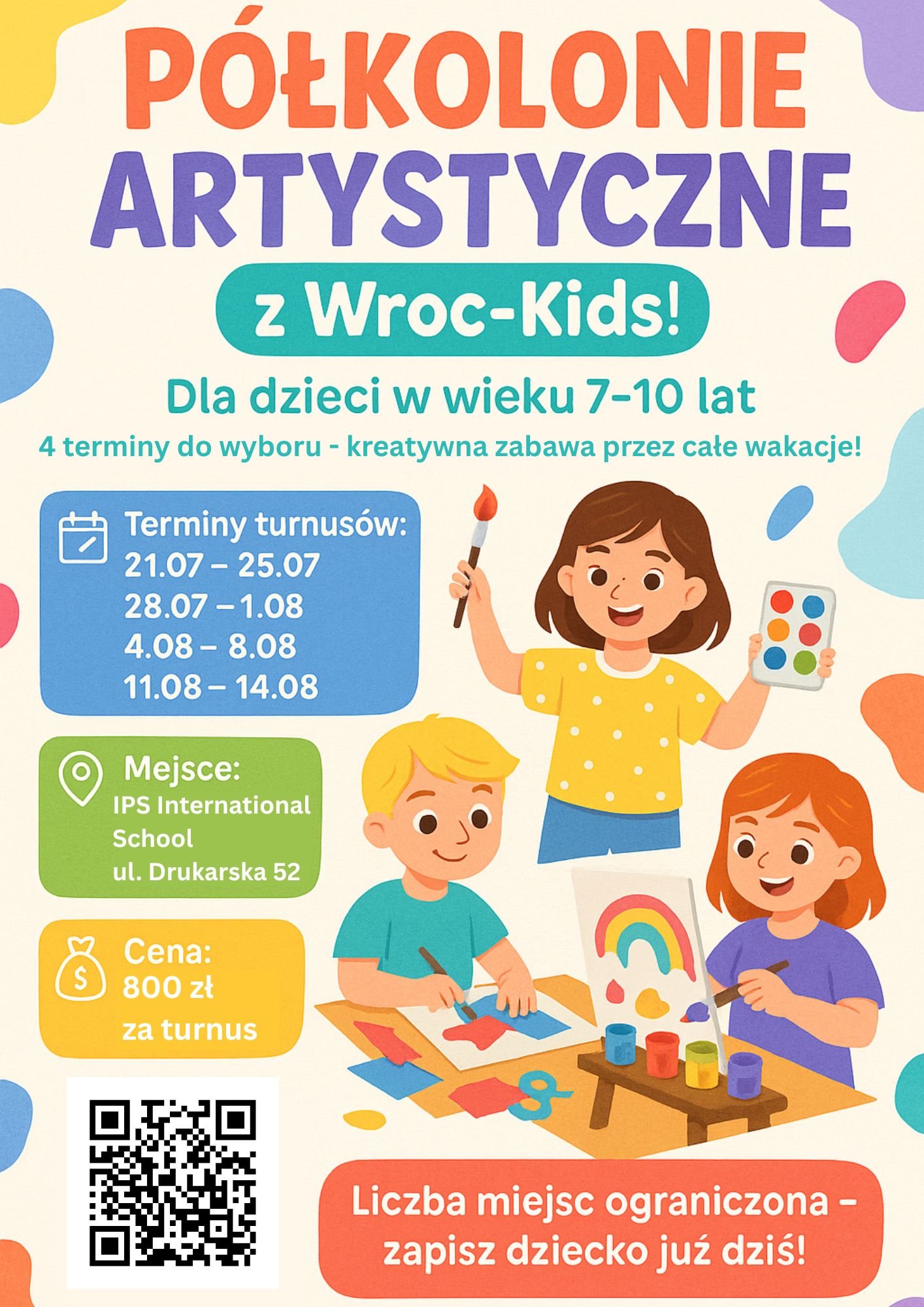 Półkolonie odbędą się w IPS International School przy ul. Drukarskiej 52 we Wrocławiu. To nowoczesna placówka edukacyjna, w pełni dostosowana do potrzeb dzieci.