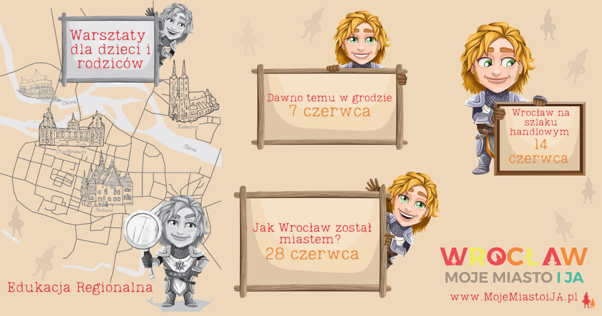 Zapraszamy na wyjątkową serię warsztatów edukacyjnych dla dzieci i rodziców! Podczas naszych spotkań wspólnie wyruszycie w podróż przez historię Wrocławia. To nie tylko warsztaty – to pełna przygód opowieść o dawnym grodzie, kupcach, tajemniczych zakamarkach miasta i jego niezwykłych legendach.
