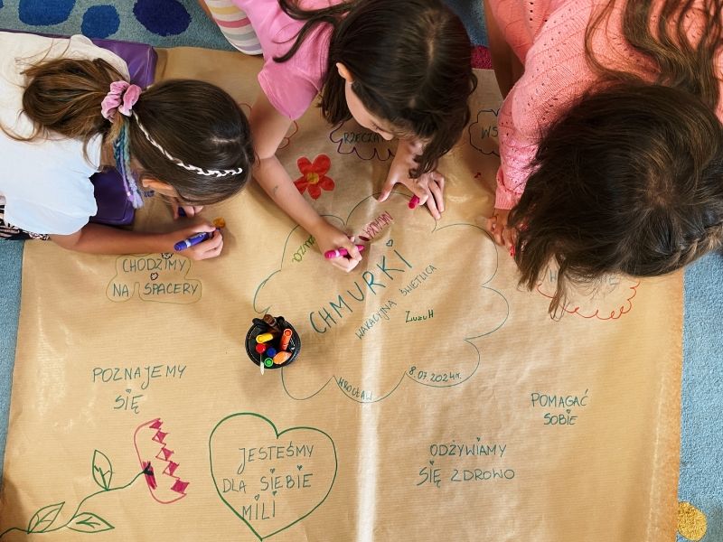 Rozwijamy nie tylko wyobraźnię, ale również uważność, umiejętność współpracy i radość z bycia razem. Wszystko to odbywa się w ciepłej, bezpiecznej atmosferze pod opieką doświadczonych wychowawców, którzy dbają o komfort i dobrą zabawę dzieci.