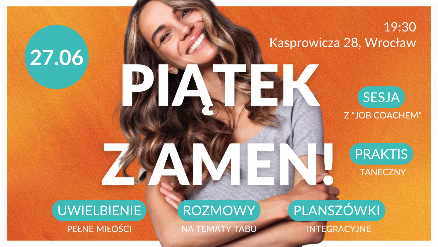Piątek z Amen Wrocław to chrześcijańskie wydarzenie, które łączy uwielbienie Boga, relacje z ludźmi i dobrą zabawę. Wszystko to w atmosferze autentyczności, radości i wolności!