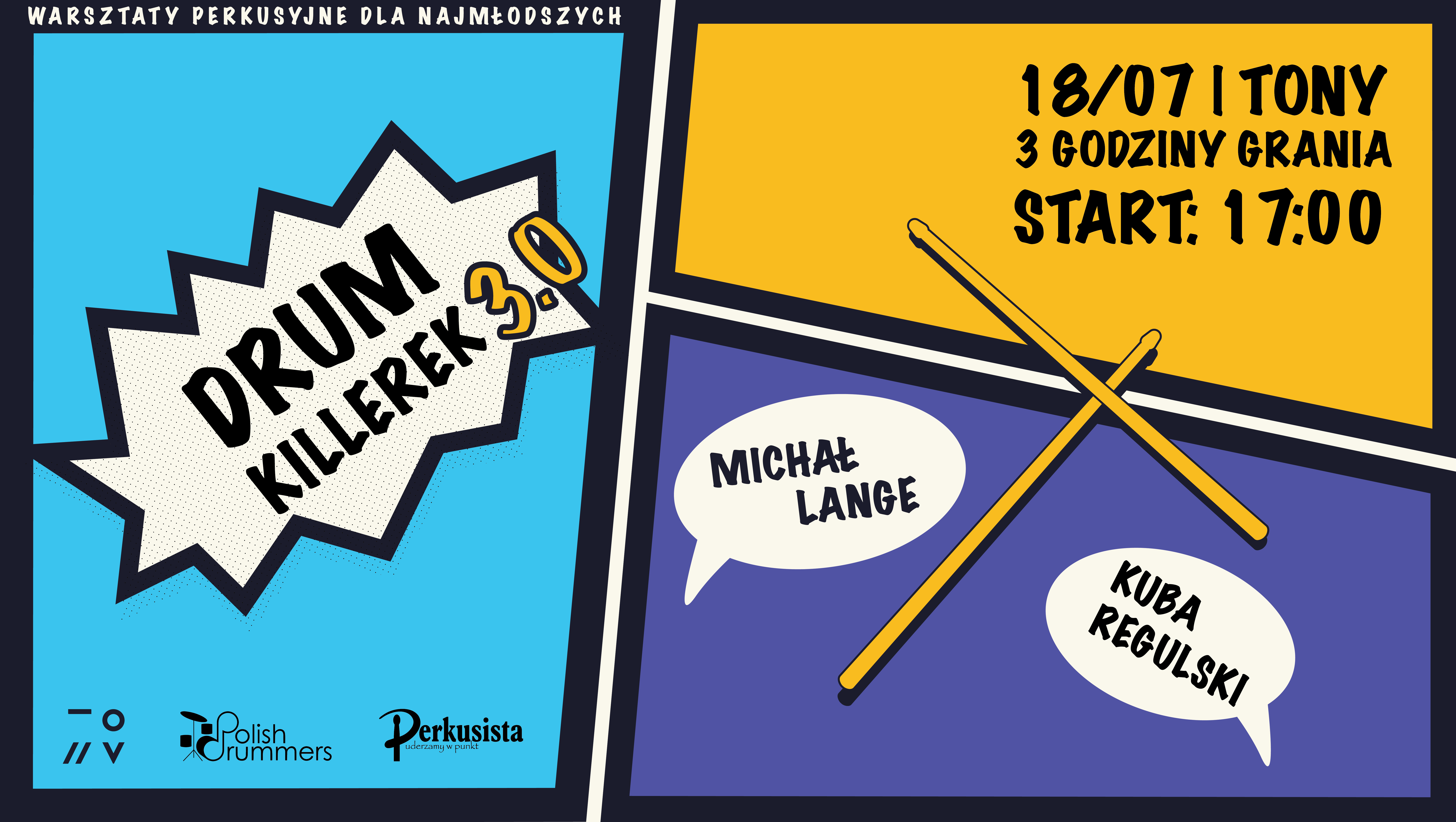Zapraszamy na kolejną edycję Drum Killerka! Jeśli masz dziecko, które lubi grać na perkusji, a Ty chętnie wypijesz w spokoju kawę lub herbatę – przyprowadź swoją pociechę na trzygodzinne warsztaty perkusyjne dla najmłodszych i zyskaj chwilę wolności.