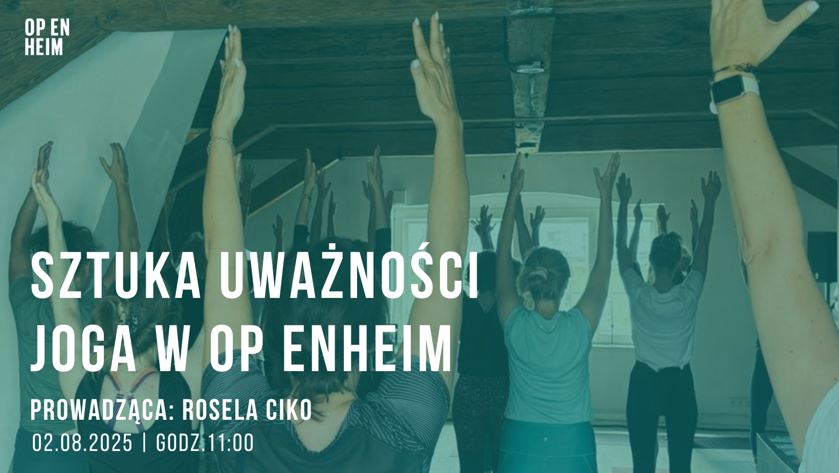 Drugie spotkanie cyklu będzie skupioną wokół wystawy „Trwając bez powrotu” Jessiki Ostrowicz. Podczas tego spotkania przyjrzymy się, jak ciało może stać się nośnikiem nie tylko trudnych wspomnień, ale też żywej energii i twórczego potencjału. Rozpoczniemy od łagodnego osadzenia się w chwili obecnej – tak, by dać ciału przestrzeń na oddech i uważność. Poprzez sekwencje wzmacniające poczucie ugruntowania i zakorzenienia będziemy uczyć się odczytywać sygnały, jakie wysyła ciało, i odpowiadać na nie z szacunkiem. Zaufanie, radość i siła płynąca zarówno z naszych własnych doświadczeń, jak i historii przodków, staną się naszym przewodnikiem w ruchu. Po sesji jogi zostaniemy oprowadzeni po wystawie oraz zwiedzimy zabytkowe wnętrza OP ENHEIM. Następnie, dla chętnych – wspólna kawa i śniadanie w pobliskiej kawiarni.