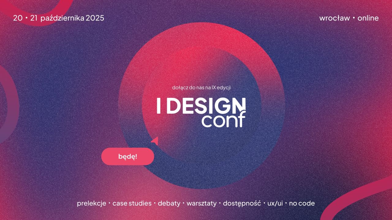 IX edycja I DESIGN Conf nadchodzi! Konferencja od projektantów dla projektantów, gdzie praktyka spotyka pasję, a inspiracja staje się realnym działaniem.