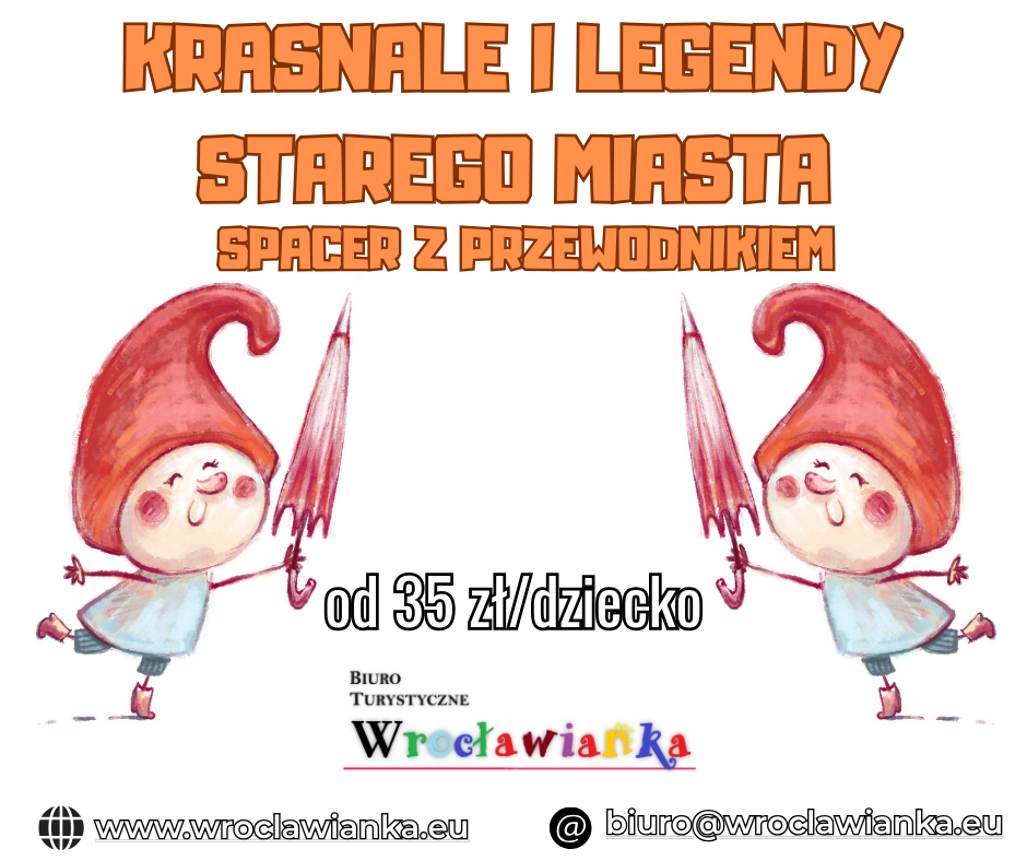 Spacer dla dzieci od 4 do 10 roku życia , spacer dla całej rodziny. Krasnale mieszają we Wrocławiu już od bardzo dawna. Jest ich w mieście bardzo, bardzo dużo. Każdy z nich ma pewne zadanie do wykonania, a wieczorem po skończonej pracy wracają do swojego domku.
