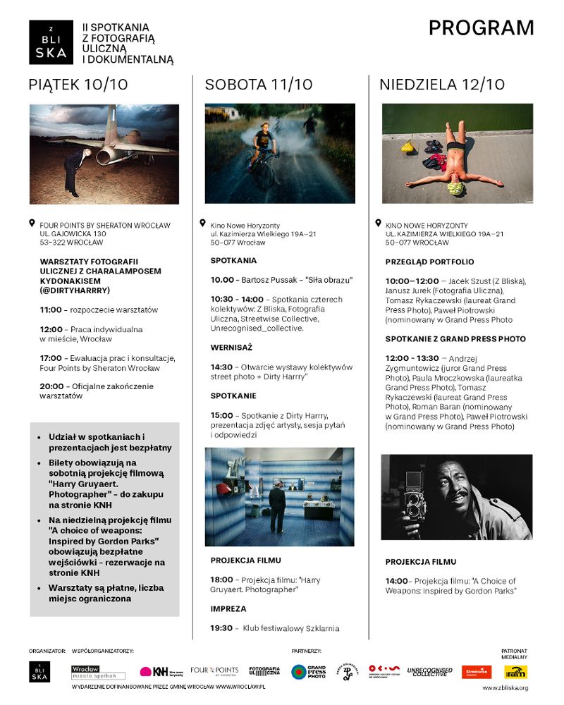 - Spotkanie z polskimi kolektywami popularyzującymi fotografię uliczną: Z Bliska, Fotografia Uliczna, Streetwise Collective, Unrecognised Collective.