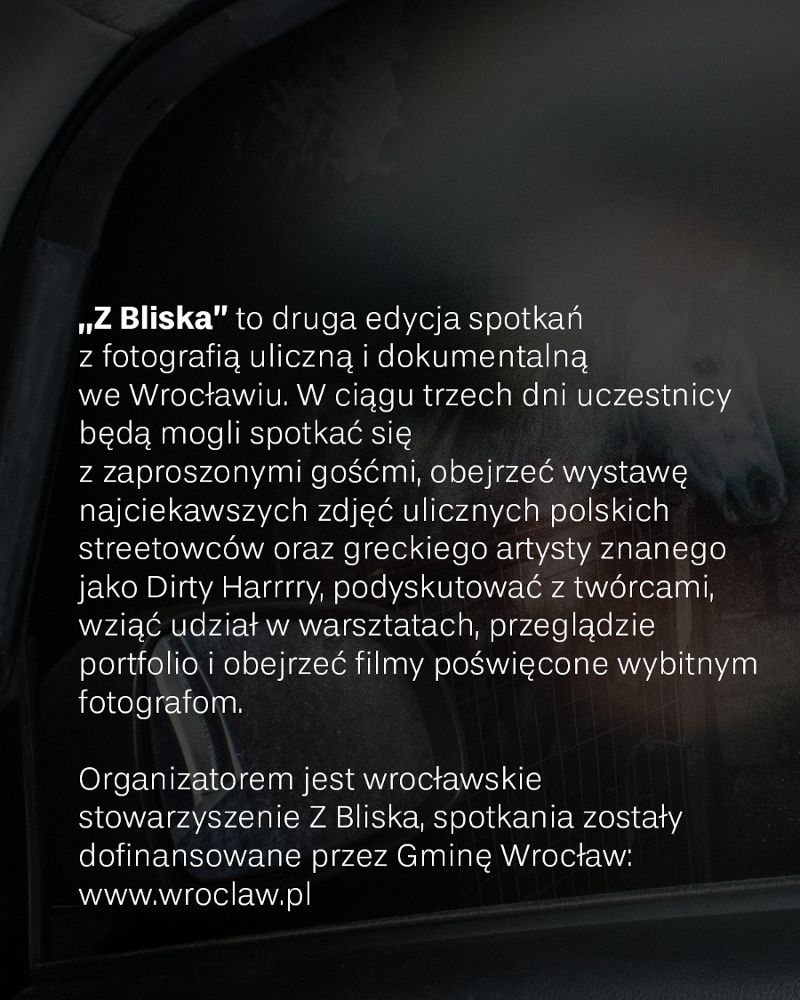 „Z Bliska” to marka coraz mocniej kojarzona we Wrocławiu z fotografią uliczną i dokumentalną. Pod tym szyldem odbywa się już druga edycja wydarzenia „Spotkania z fotografią uliczną i dokumentalną”. Wydarzenie jest współfinansowane przez Gminę Wrocław i organizowane przez Stowarzyszenie Z Bliska, którego celem jest rozwój i promocja fotografii we Wrocławiu oraz pozyskiwanie środków na działalność kulturalną: www.zbliska.org.