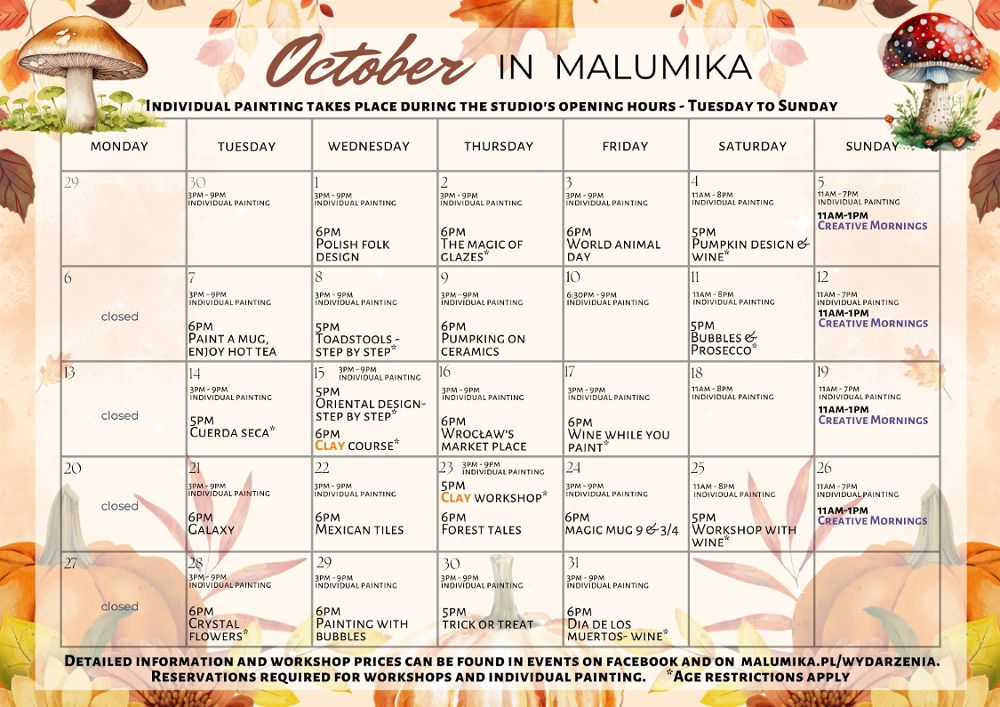 Październik w MaluMice to czas pełen ciepła, barw i twórczych spotkań przy ceramice. W jesienne wieczory zapraszamy do naszej klimatyzowanej pracowni w sercu Wrocławia – miejsca, w którym można zwolnić tempo i dać się ponieść kreatywności.