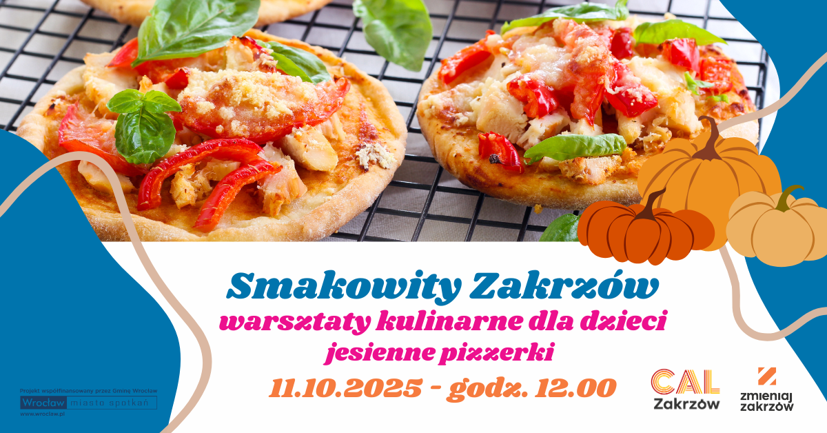 Zapach jesieni i… pizzy w powietrzu! Zapraszamy wszystkie dzieci na wyjątkowe warsztaty kulinarne pt. „Jesienne pizzerki”, które odbędą się w najbliższą sobotę 11 października 2025 r. o godz. 12:00 w CAL-u Zakrzów!