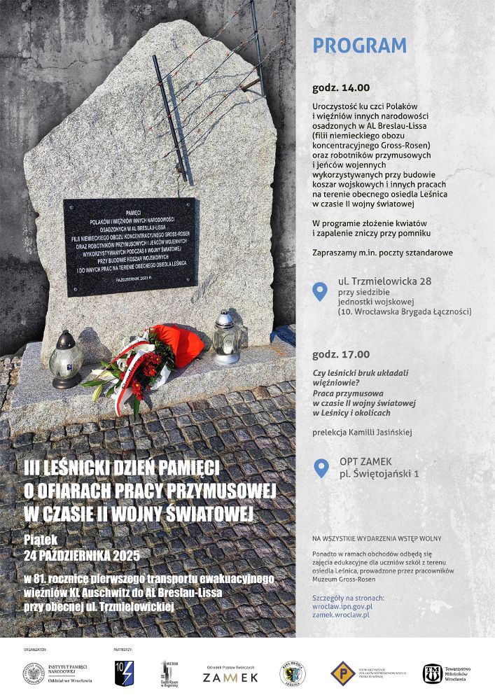 III Leśnicki Dzień Pamięci jest kontynuacją działań zainicjowanych w 2023 roku. Głównym punktem obchodów będzie okolicznościowa uroczystość ku czci Polaków i więźniów innych narodowości osadzonych w AL Breslau-Lissa oraz robotników przymusowych i jeńców wojennych wykorzystywanych przy budowie koszar wojskowych i innych pracach na terenie obecnego osiedla Leśnica w czasie II wojny światowej.