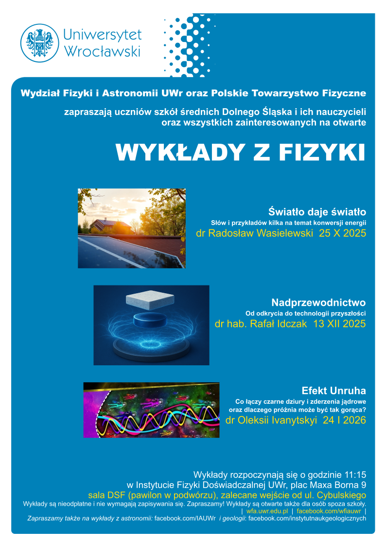 - Miejsce: Wydział Fizyki i Astronomii UWr