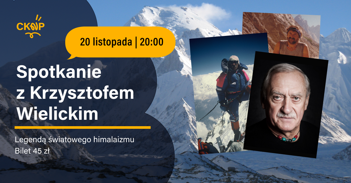 Zapraszamy na wyjątkowe spotkanie z Krzysztofem Wielickim – legendą światowego himalaizmu, piątym człowiekiem na Ziemi, który zdobył Koronę Himalajów i Karakorum, czyli wszystkie czternaście ośmiotysięczników. Trzykrotnie dokonywał pierwszych zimowych wejść na najwyższe szczyty świata – Mount Everest, Kanczendzongę i Lhotse, przesuwając granice ludzkich możliwości i wpisując się na stałe w historię światowego alpinizmu. To właśnie jego wejście na Mount Everest 17 lutego 1980 roku, dokonane wraz z Leszkiem Cichym, otworzyło nowy rozdział w dziejach światowego himalaizmu – erę polskich zimowych zdobywców najwyższych gór świata.