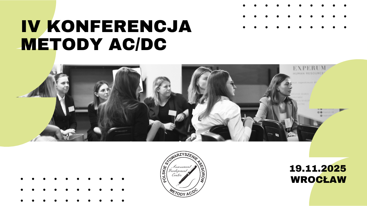 19 listopada 2025 odbędzie się IV Konferencja Metody AC/DC – jedyna taka konferencja w Polsce poświęcona metodzie Assessment/Development Center. Konferencja ma na celu przybliżenie rzetelnej wiedzy o metodzie AC/DC, a także pokazanie jakie korzyści przynosi jej stosowanie. Badania pokazują, że organizacje posiadające systemy kompetencyjne częściej odnoszą sukces na rynku! To ważna informacja dla HR-owców i osób zarządzających. Forma konferencji pozwala na swobodną wymianę doświadczeń pomiędzy publicznością, a prelegentami.