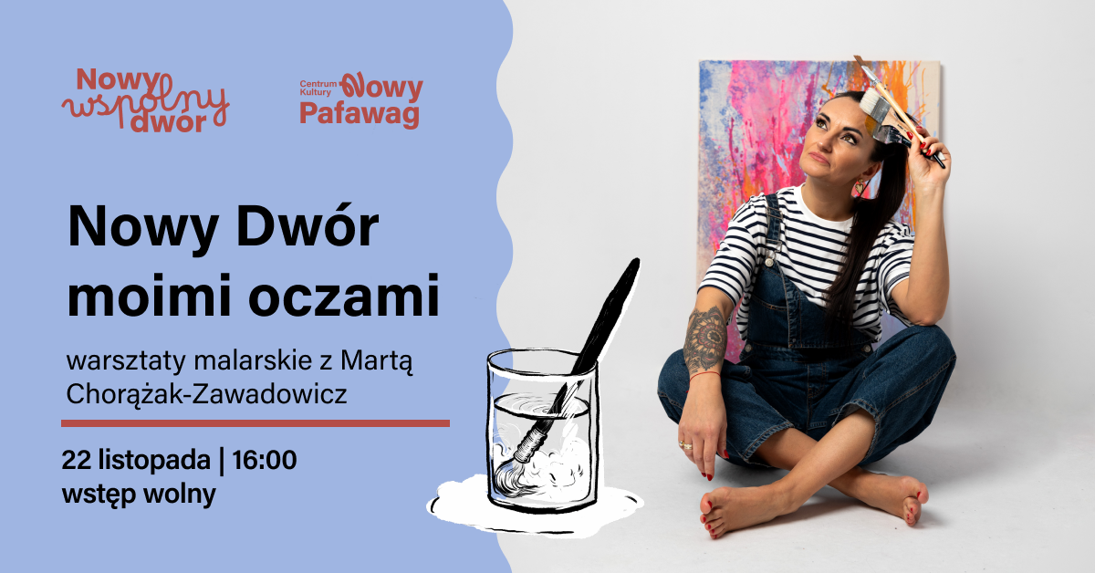 Zapraszamy na kolejną inicjatywę w ramach projektu „Nowy wspólny Dwór” – warsztaty malarskie pod hasłem „Nowy Dwór moimi oczami”, które poprowadzi Marta Chorążak-Zawadowicz. Co czujesz, kiedy myślisz o swoim osiedlu?