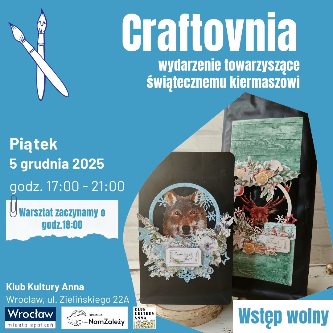 Podczas Cravftovni możesz pracować nad własnym projektem przed lub po warsztacie. To także wydarzenie towarzyszące świątecznemu kiermaszowi Klubu Kultury Anna.