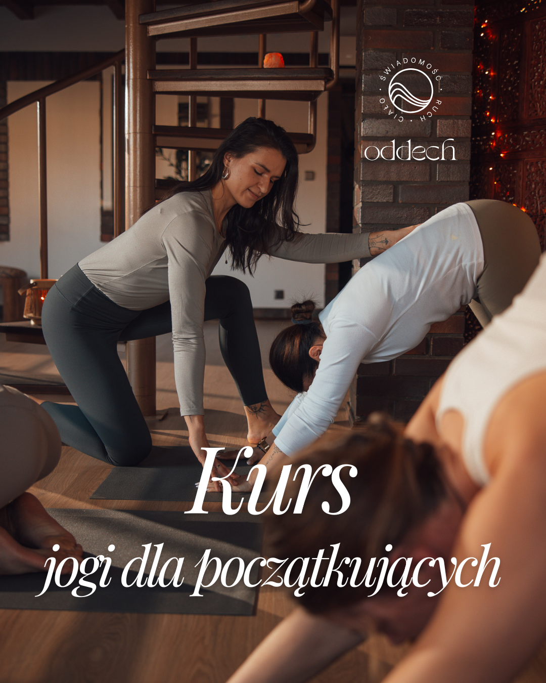 Kurs odbywa się w kameralnej grupie (maksymalnie 8 osób), dzięki czemu krok po kroku poznasz podstawowe pozycje, nauczysz się świadomego oddechu i pracy z ciałem. To doskonała okazja, aby zbudować solidne fundamenty do dalszej praktyki i poczuć się pewnie na macie.