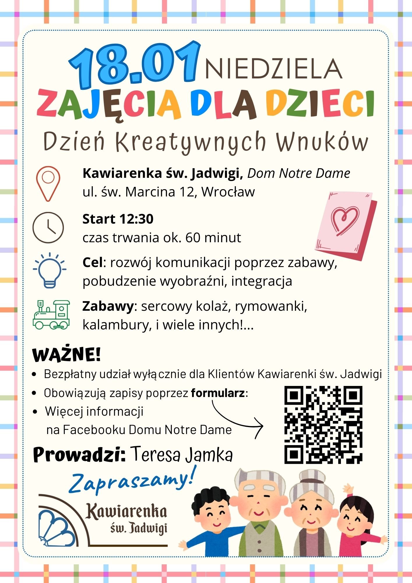 Najbliższe spotkanie będzie prawdziwie wyjątkowe – mali uczestnicy będą mieli okazję stworzyć własnoręczny upominek dla Babć i Dziadków, a wszystko to w towarzystwie domowych ciast i aromatycznych napojów.