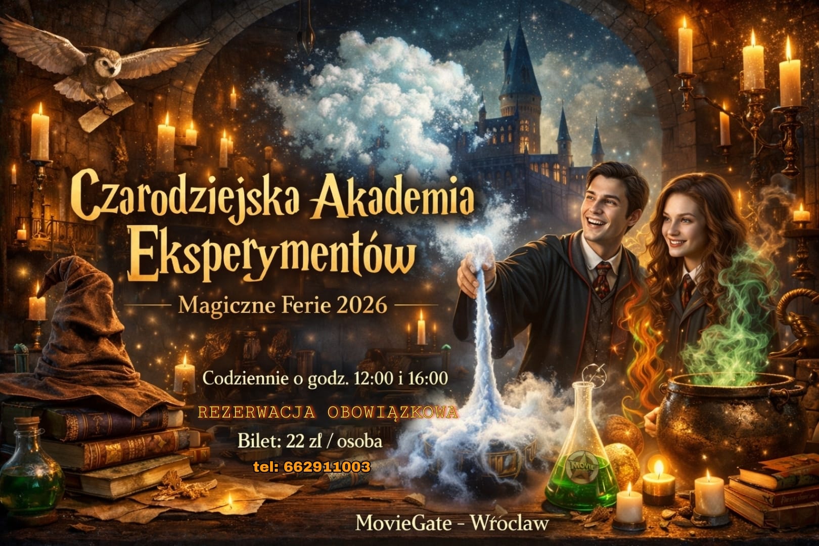 W czasie ferii zimowych podziemia MovieGate we Wrocławiu zamienią się w pełną tajemnic przestrzeń, gdzie nauka spotyka się z magią. To niezwykłe widowisko inspirowane światem szkół magii, podczas którego eksperymenty wyglądają jak prawdziwe zaklęcia.