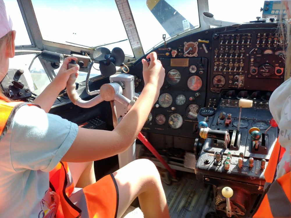 Rodzinna wycieczka edukacyjna dla dzieci wraz z rodzicami na podwrocławskim lotnisku Mirosławice
