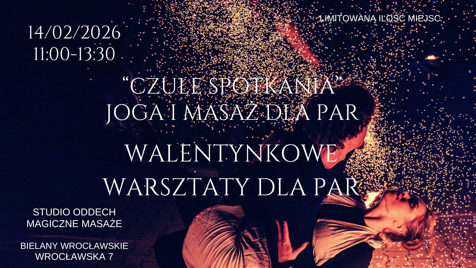 Zapraszamy na walentynkowe wydarzenie dla par, podczas którego połączymy jogę w parach oraz masaż, w bardzo praktycznym, codziennym ujęciu. To propozycja dla osób, które chcą spędzić czas razem w uważny sposób i nauczyć się prostych narzędzi wspierających relację na co dzień.